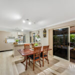 On ground level, the open kitchen, living and dining area lead out to the huge, covered patio, allowing for indoor and outdoor entertaining with ease all-year round. Fitted with endless cupboard space and quality appliances, the kitchen truly is the perfect combination of practicality and style.